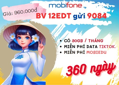 Đồng hành cùng gói cước 12EDT Mobifone quý khách tha hồ  sử dụng internet tốc độ cao và dịch vụ MobiEdu với mức phí vô cùng tiết kiệm. Nếu có nhu cầu sở hữu ưu đãi hấp dẫn từ gói data này, quý khách đừng quên gửi tin theo cú pháp: BV 12EDT gửi 9084 nhé. Chúc bạn luôn vui vẻ và thành công!