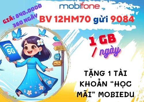 Đăng ký gói cước 12HM70 Mobifone có ngay 12 tháng sử dụng 1GB mỗi ngày