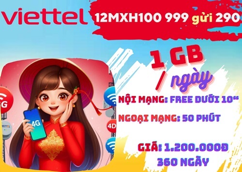 Có phải quý khách đang tìm kiếm ưu đãi cho nhu cầu sử dụng data và truy cập mạng xã hội trong thời gian dài? Có phải quý khách muốn sở hữu gói cước chỉ đăng ký 1 lần có thể sử dụng dịch vụ suốt cả năm? Nếu vậy, bạn đừng bỏ qua gói cước 12MXH100 Viettel nhé! Đây là combo ưu đãi data và tiện ích hấp dẫn được đăng ký dễ dàng với cú pháp: 12MXH100 DY gửi 290. Ưu đãi gói 12MXH100 đem lại cho người dùng khá lớn, hỗ trợ thuê bao sử dụng dịch vụ suốt 360 ngày với mức phí siêu tiết kiệm, bình quân mỗi tháng chỉ 100.000đ.