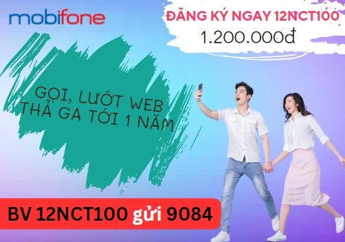 Gói cước 12NCT100 MobiFone là một trong những gói cước được nhiều người dùng yêu thích bởi những ưu đãi hấp dẫn mà nó mang lại. Với giá tiền chỉ 1.200.000 đồng, khách hàng có thể sử dụng liên tục trong vòng 1 năm. Gói cước mang đến cho khách hàng ưu đãi gọi thoại nội mạng miễn phí dưới 10 phút và 30 phút gọi ngoại mạng/tháng. Ngoài ra, khách hàng còn được tặng kèm 01 tài khoản VIP NhacCuaTui và ưu đãi data 1GB/ ngày. Để đăng ký gói cước, bạn chỉ cần soạn tin với cú pháp: BV 12NCT100 gửi 9084. Nếu bạn đang tìm kiếm một gói cước có ưu đãi gọi thoại, data khủng, giá cả hợp lý thì 12NCT100 MobiFone là một lựa chọn đáng cân nhắc.