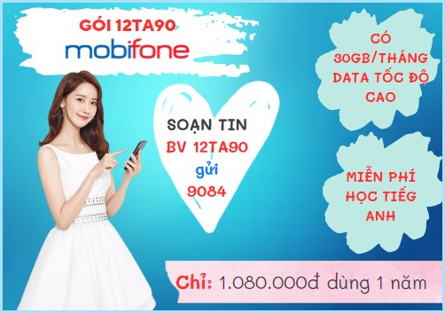 Lựa chọn gói cước 12TA90 Mobifone ngay để trải nghiệm tốc độ Internet cực đã. Chỉ với 90.000đ bình quân mỗi tháng, khách hàng nhận ngay 360GB (1GB/ngày) data tốc độ cao cùng nhiều tiện ích hấp dẫn. Đối với những thuê bao có nhu cầu ôn luyện IELTS hay tiếng Anh chuyên sâu thì đừng nên bỏ qua gói cước này. Cú pháp đăng ký cực đơn giản, cùng soạn tin: BV 12TA90 gửi 9084 để tham gia ngay nhé!