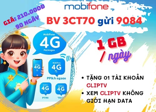 Gói cước 3CT70 Mobifone được kích hoạt thành công sẽ đem lại cho quý khách ưu đãi 1GB data mỗi ngày. Không chỉ hỗ trợ sử dụng data theo nhu cầu, gói 4G này còn miễn phí hoàn toàn dung lượng tốc độ cao khi thuê bao giải trí tại ứng dụng ClipTV suốt 3 tháng. Sở hữu ưu đãi lớn, chi phí rẻ, hạn dùng dài song có phải khách hàng nào cũng được nhận ưu đãi từ gói cước này không? Mời các bạn cùng nội dung bài viết dưới đây tìm hiểu chi tiết về gói data dài kỳ này nhé!