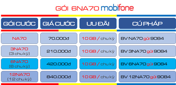 | Cú pháp đăng ký PT70 mobifone chu kỳ 30 ngày | BV PT70 gửi 9084 |