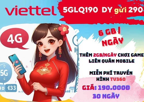 Đăng ký gói cước 5GLQ190 Viettel dùng TV360, game Liên quân, Mybox, online thả ga 30 ngày