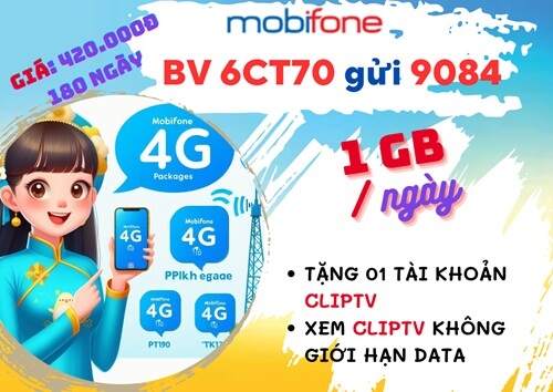 Tham gia gói cước 6CT70 Mobifone là lựa chọn tối ưu nếu bạn thường xuyên online và giải trí cùng ClipTV trên di động mỗi ngày. Hãy nhanh tay sở hữu gói 4G này để tha hồ sử dụng data giá rẻ ngay hôm nay nhé. Chúc bạn thành công!