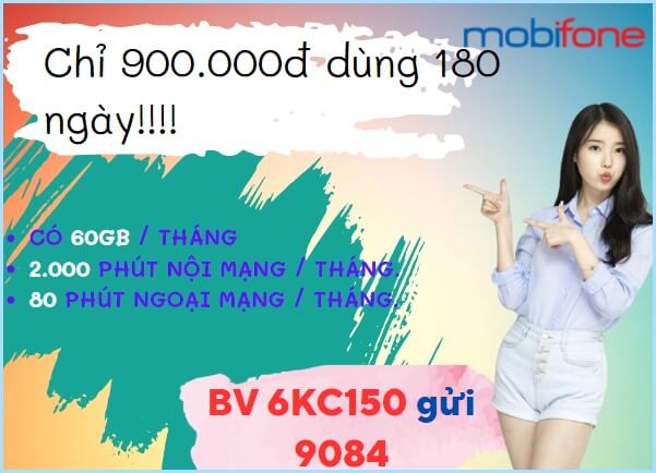 Với những thuê bao có nhu cầu dùng mạng và liên lạc cao thì gói cước 6KC150 MobiFone là sự lựa chọn hoàn hảo. Mang đến ưu đãi data cực khủng lên đến 2GB mỗi ngày, được sử dụng liên tục suốt 6 tháng. Soạn tin theo cú pháp: BV 6KC150 gửi 9084, đăng ký thành công bạn còn nhận được ưu đãi miễn phí các cuộc gọi nội mạng dưới 10 phút (tối đa 2000 phút/ tháng) và 80 phút gọi ngoại mạng mỗi tháng.