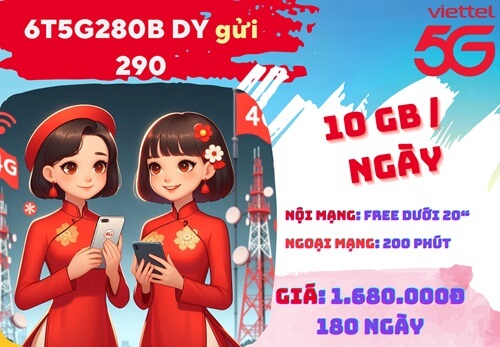 - Tên gói cước: 6T5G280B Viettel