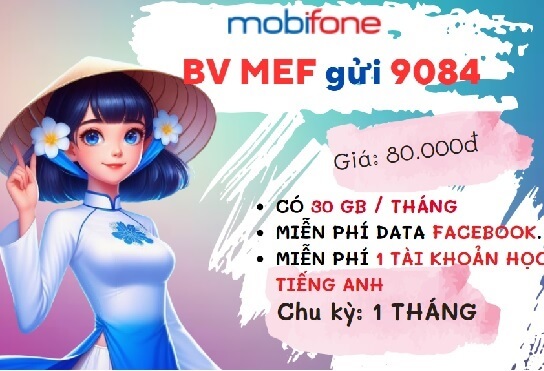 Bạn đang tìm kiếm gói cước data khủng để học tập online hiệu quả và giải trí thả ga trên Facebook? Gói cước MEF MobiFone chính là lựa chọn lý tưởng dành cho bạn. Chỉ với 80.000 đồng, bạn sẽ sở hữu ngay chu kỳ sử dụng 30 ngày, thoải mái tận hưởng ưu đãi suốt cả tháng. Đăng ký gói cước theo cú pháp: BV MEF gửi 9084, kích hoạt thành công gói cước bạn sẽ nhận ngay 01 tài khoản học tiếng Anh không giới hạn nội dung trên https://mobienglish.vn, bứt phá tiếng Anh mỗi ngày với kho tàng kiến thức khổng lồ và phương pháp học tập hiện đại. Đặc biệt, bạn được thả ga kết nối Facebook không giới hạn data và nhận 1GB data tốc độ cao mỗi ngày giúp truy cập internet mượt mà, học tập online hiệu quả và giải trí đa phương tiện không lo gián đoạn.
