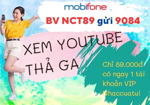 Nếu bạn thường xuyên nghe nhạc Online thì đừng nên bỏ qua gói cước hấp dẫn này. Nhà mạng Mobifone vừa triển khai gói cước NCT89 Mobifone với cước phí siêu rẻ chỉ 89.000đ/ tháng, bạn nhận được combo ưu đãi cực lớn. Thoải mái nghe nhạc không giới hạn dung lượng với 1 tài khoản VIP NhacCuaTui và ưu đãi 1GB mỗi ngày dung lượng truy cập tốc độ cao liên tục suốt cả tháng. Còn chần chờ gì nữa mà không soạn tin tham gia ngay nào: BV NCT89 gửi 9084.