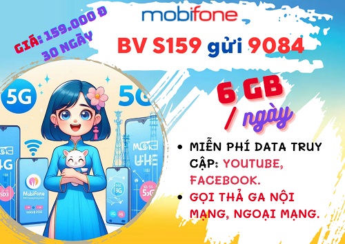 Gói cước S159 Mobifone không chỉ đem lại cơ hội online thả ga mà còn hỗ trợ cho thuê bao thoải mái liên lạc trong nước và sử dụng tiện ích trên di động. Vừa được triển khai, gói ưu đãi mới này đã nhận được sự quan tâm, lựa chọn của đông đảo khách hàng. Chỉ với 159.000đ kèm tin nhắn gửi theo cú pháp: BV S159 gửi 9084, bạn đã có cơ hội đồng hành cùng gói dịch vụ này, yên tâm sử dụng data, gọi thoại và lưu trữ suốt 30 ngày.